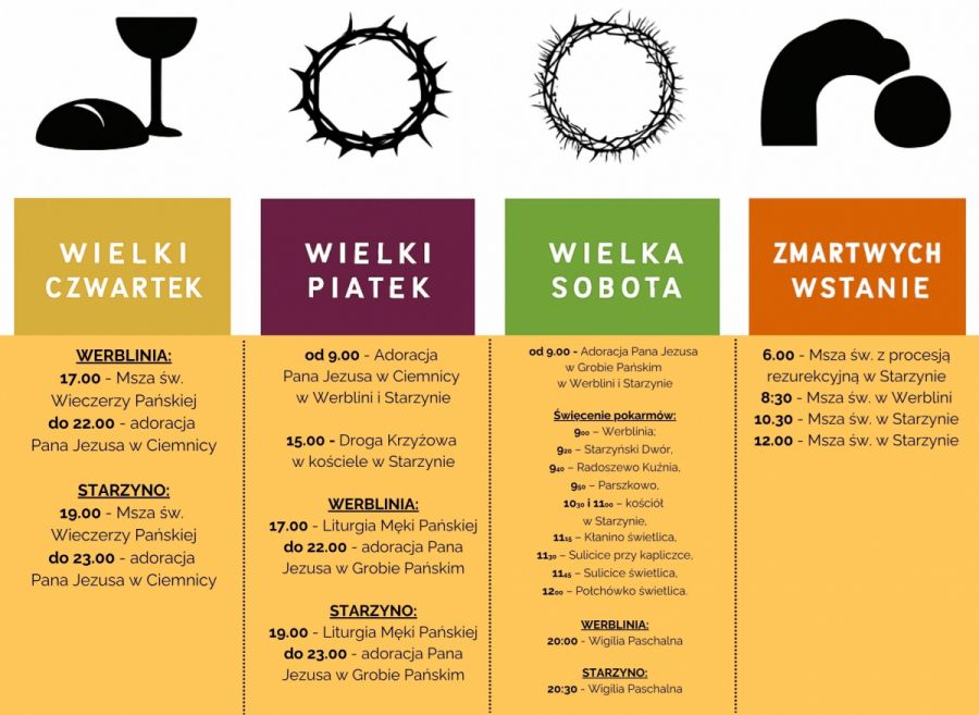 - Liturgia Męki Pańskiej w Werblini o 17.00, w Starzynie o 19.00.
