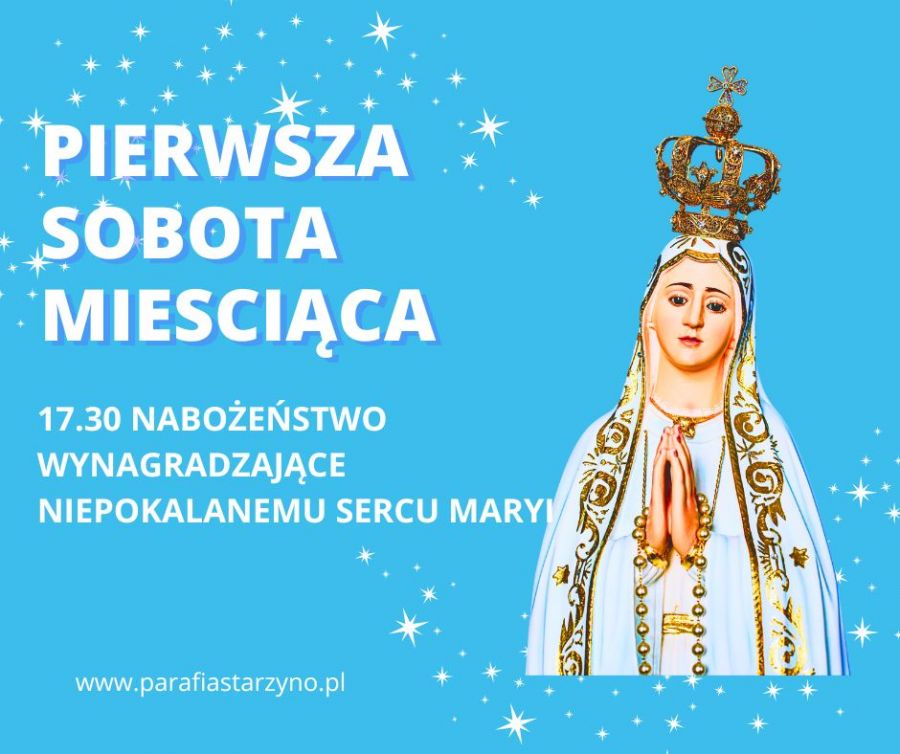 W I sobotę miesiąca zapraszamy na Adorację Najświętszego Sakramentu od 17:00 a o 17:30 na nabożeństwo wynagradzające Niepokalanemu Sercu Maryi.